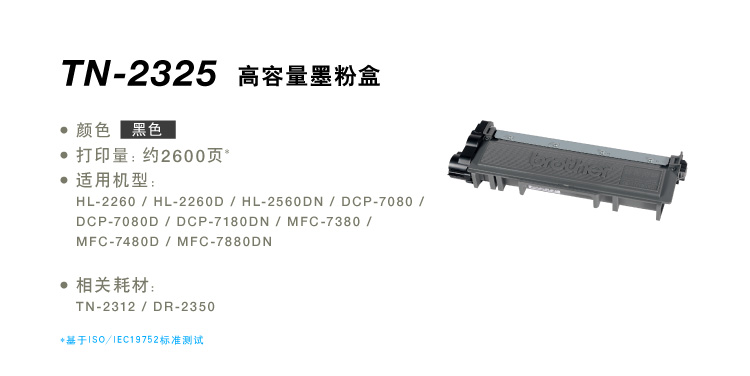 • 兄弟(brother)TN-2325 黑色墨粉 2600頁(yè) (適用兄弟7380/7480/7880、7080/7080D/7180、2260/2260D/256...