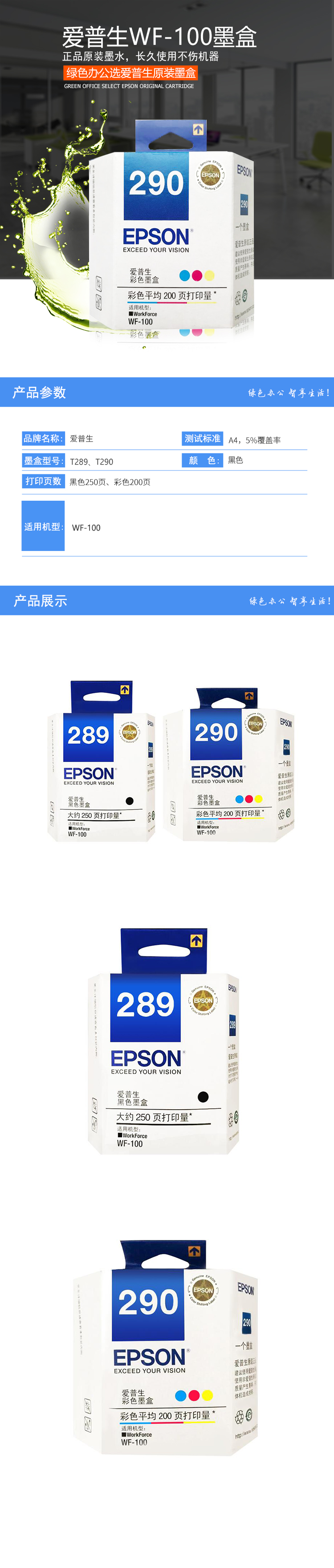• 商品名稱:愛普生(EPSON)T289黑色墨盒 (適用WF-100機型)