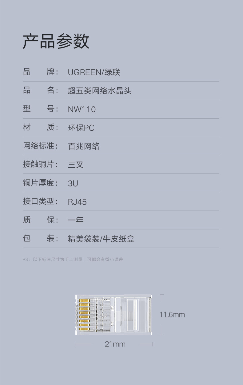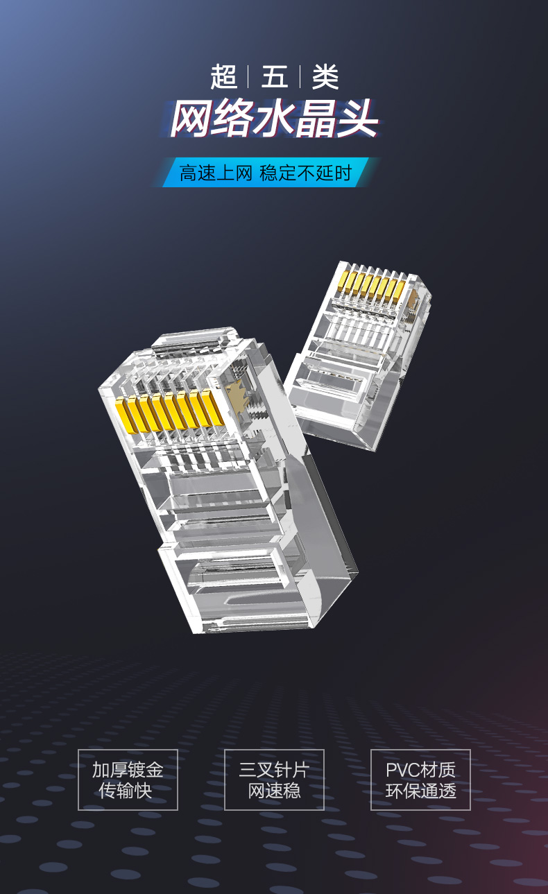 • 商品名稱:綠聯(lián) 超五類RJ45網(wǎng)絡水晶頭 100個/包