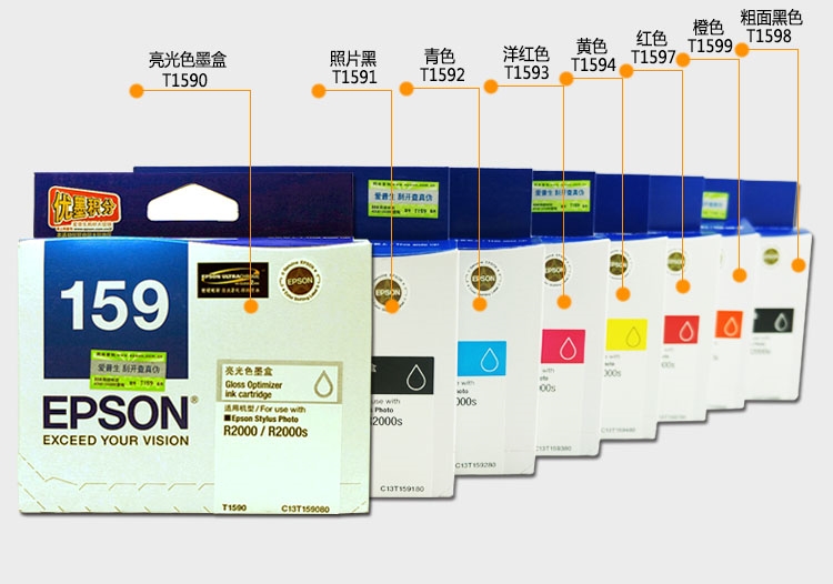 • 商品名稱:愛普生(EPSON)T1590/T1599墨盒適合R2000 R2000S打印機 T1590亮光色墨盒