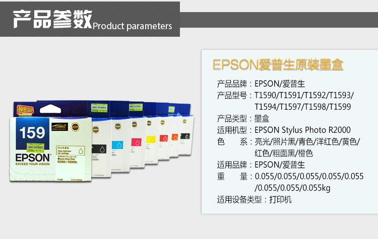 • 商品名稱:愛(ài)普生(EPSON)T1590/T1599墨盒適合R2000 R2000S打印機(jī) T1593洋紅色墨盒