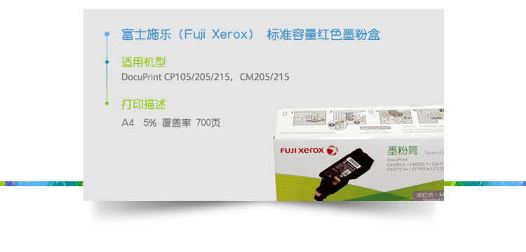 • 商品名稱:富士施樂(Fuji Xerox) CP105b/205b/215,CM215fw/205 標(biāo)準(zhǔn)容量紅色墨粉,粉盒,碳粉,耗材