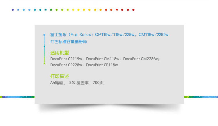• 商品名稱:富士施樂(Fuji Xerox)CP119w/118w/228w,CM118w/228fw紅色標準容量墨粉筒,粉盒,碳粉,耗材