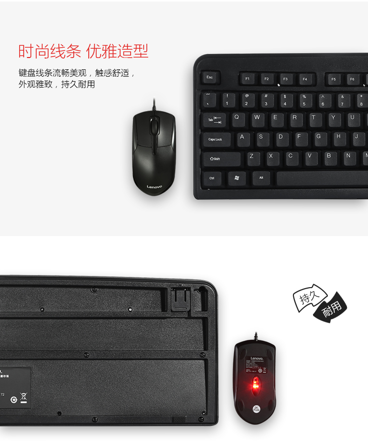• 聯(lián)想(lenovo)有線鍵盤鼠標(biāo)套裝 鍵盤 鍵鼠套裝 辦公鼠標(biāo)鍵盤套裝 KM4800鍵盤 電腦鍵盤筆記本鍵盤