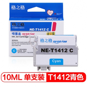 • 格之格T1412墨盒適用愛普生ME33 ME330 ME35 350 620F 960FWD打印機(jī)NE-T1412C藍(lán)色墨盒