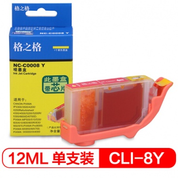 • 商品名稱:格之格CLI-8Y黃色墨盒NC-C0008Y適用佳能ip4200 ip4300 IP4500 IP5200 IP5300 IP3300 MP600打印機(jī)墨盒