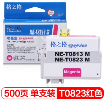 • 商品名稱:格之格T0823墨盒適用愛普生R270 R295 R390 RX590 R290 RX690打印機(jī)墨盒 紅色