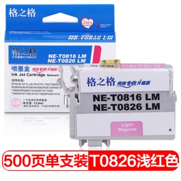 • 商品名稱:格之格T0826墨盒適用愛普生R270 R295 R390 RX590 R290 RX610 RX690打印機(jī)墨盒 淺紅色