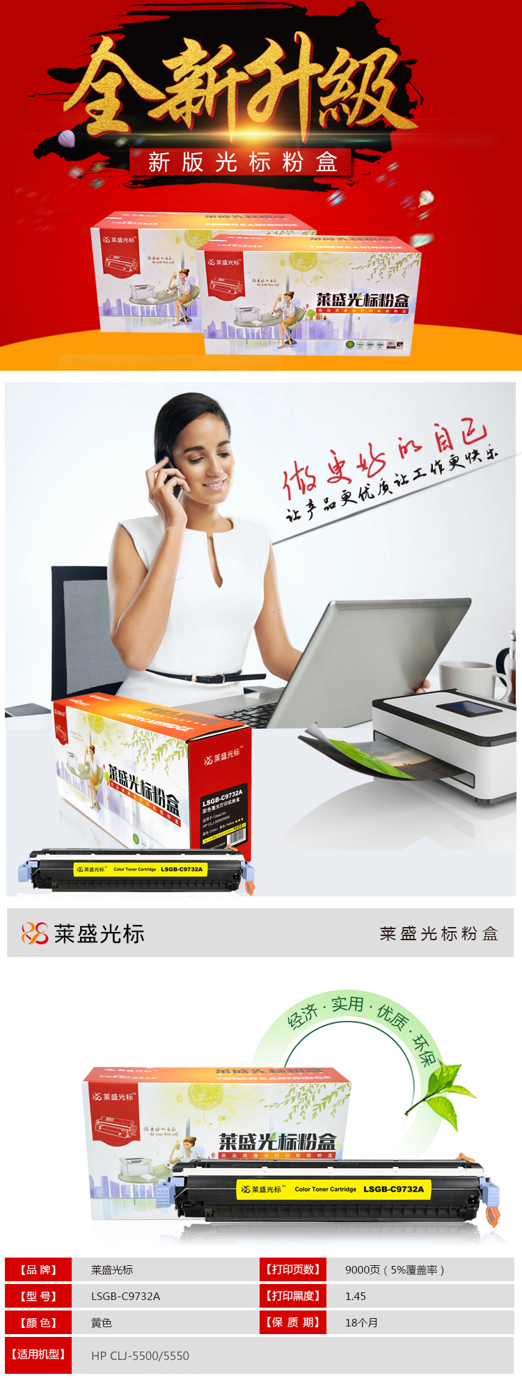 • 萊盛光標(biāo)LSGB-C9732A彩色硒鼓適用于HP CLJ-5500/5550 黃色
