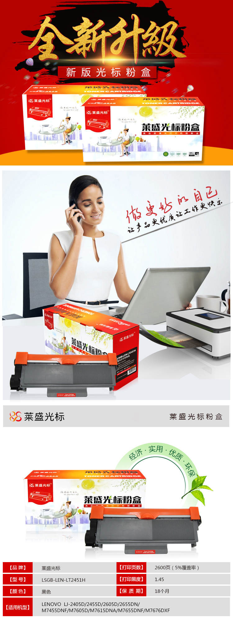 • 萊盛光標(biāo)LSGB-LEN-LT2451H黑色墨粉盒適用于LENOVO LJ-2405D/2455D/2605D/2655 黑色