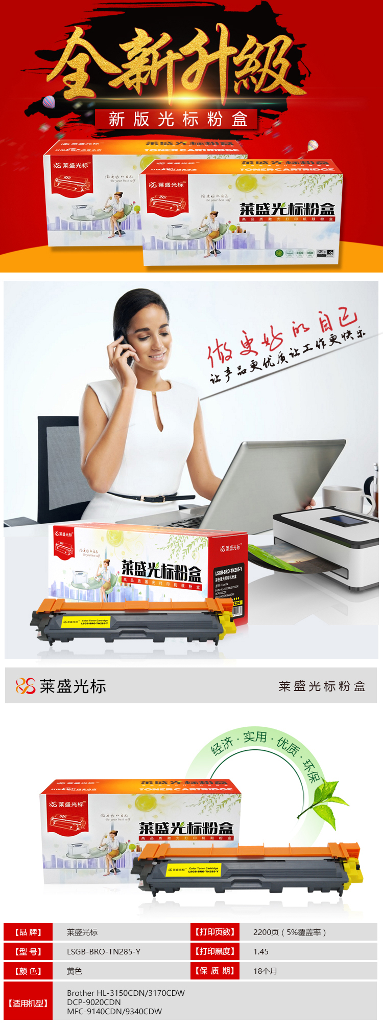 • 商品名稱:萊盛光標LSGB-BRO-TN285-Y彩色硒鼓適用于Brother HL-3150CDN/3170CDW 黃色