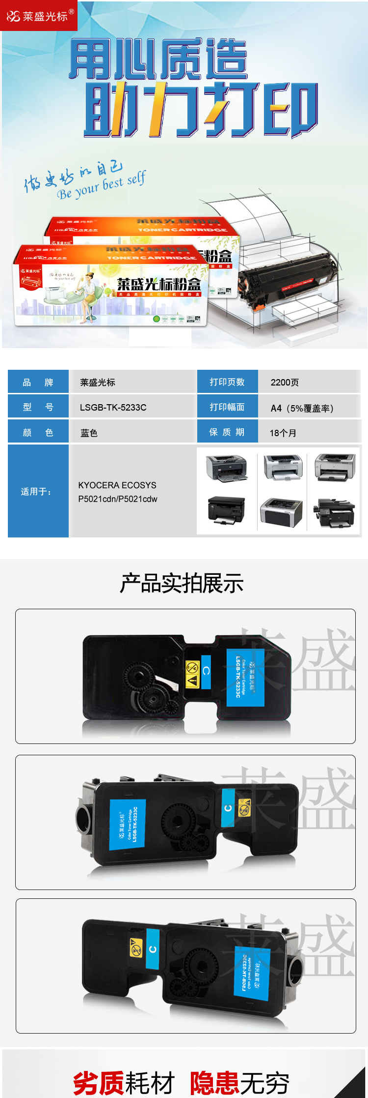 • 商品名稱:萊盛光標(biāo)LSGB-TK-5233C青色粉盒/硒鼓適用于KYOCERA ECOSYS P5021cdn/P5021cdw 藍(lán)