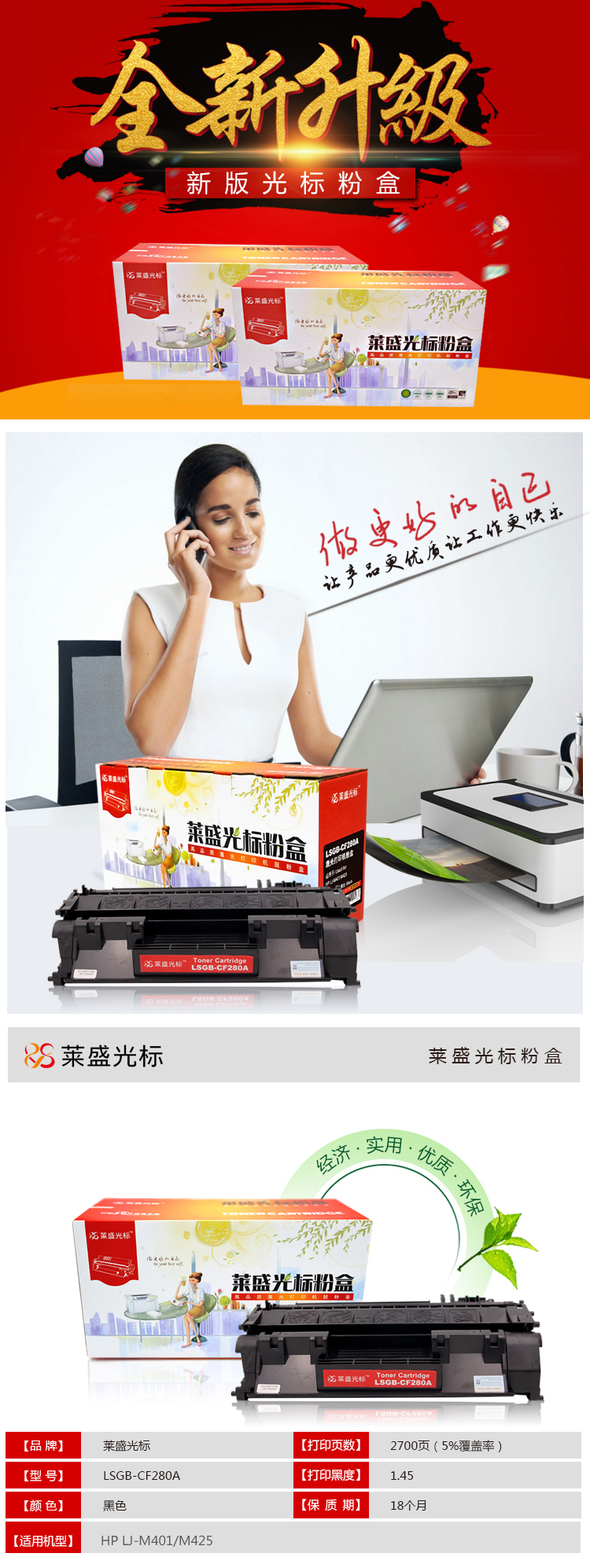 • 商品名稱:萊盛光標 LSGB-CF280A黑色硒鼓適用HP LJ-M401/M425 黑色