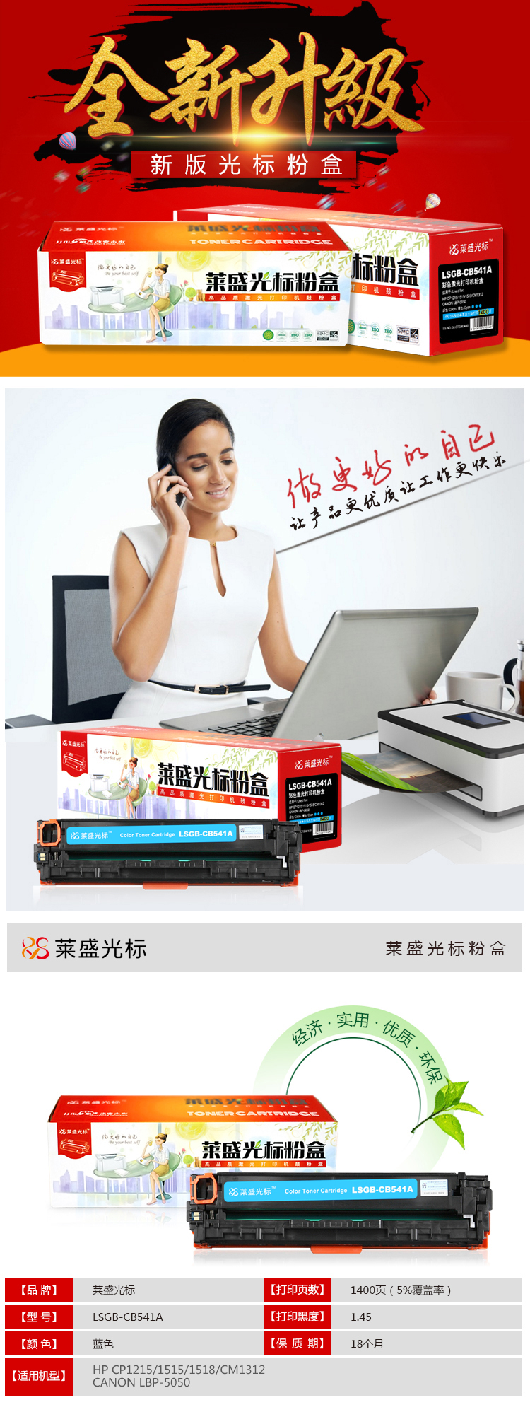 • 商品名稱:萊盛光標(biāo) LSGB-CB541A青色硒鼓適用HP CP1215/1515/1518/CM1312 青色