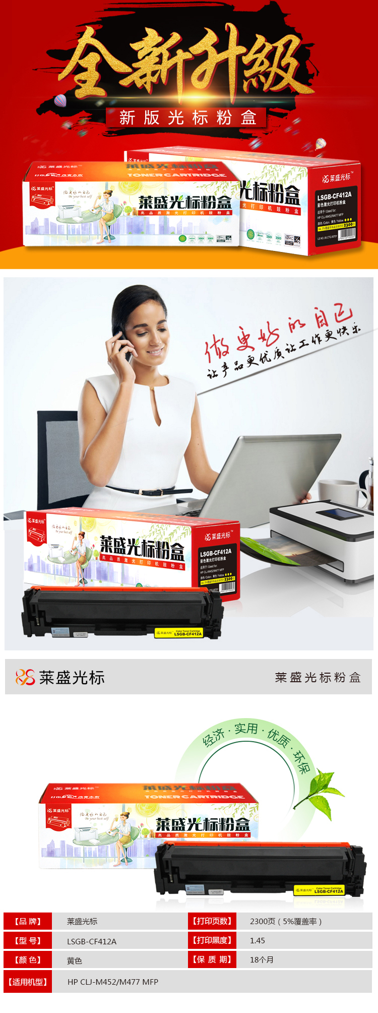 • 商品名稱(chēng):萊盛光標(biāo)LSGB-CF412A彩色墨粉盒適用于HP CLJ-M452/M477 MFP 黃色