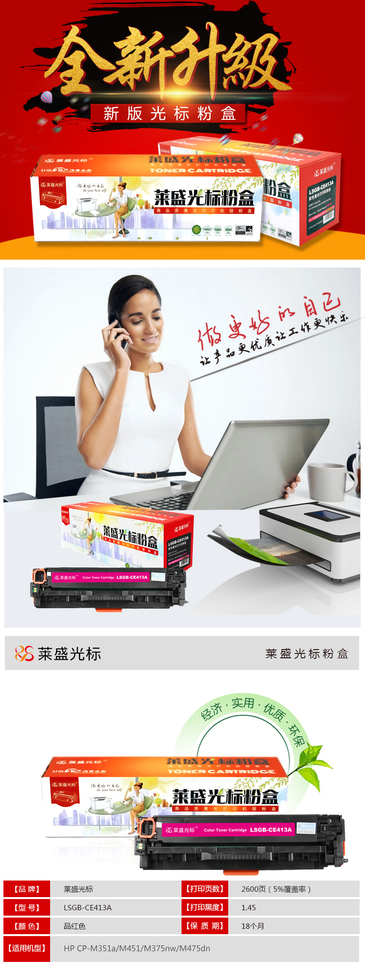 • 商品名稱:萊盛光標 LSGB-CE413A 彩色 硒鼓適用 HP CP-M351a/M451/M375nw/M475dn 紅色