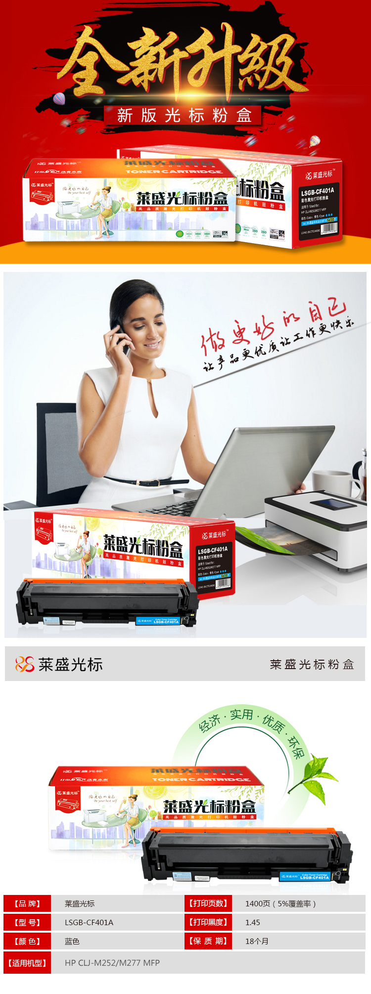 • 萊盛光標(biāo)LSGB-CF401A彩色硒鼓適用于HP CLJ-M252/M277 MFP 藍(lán)色