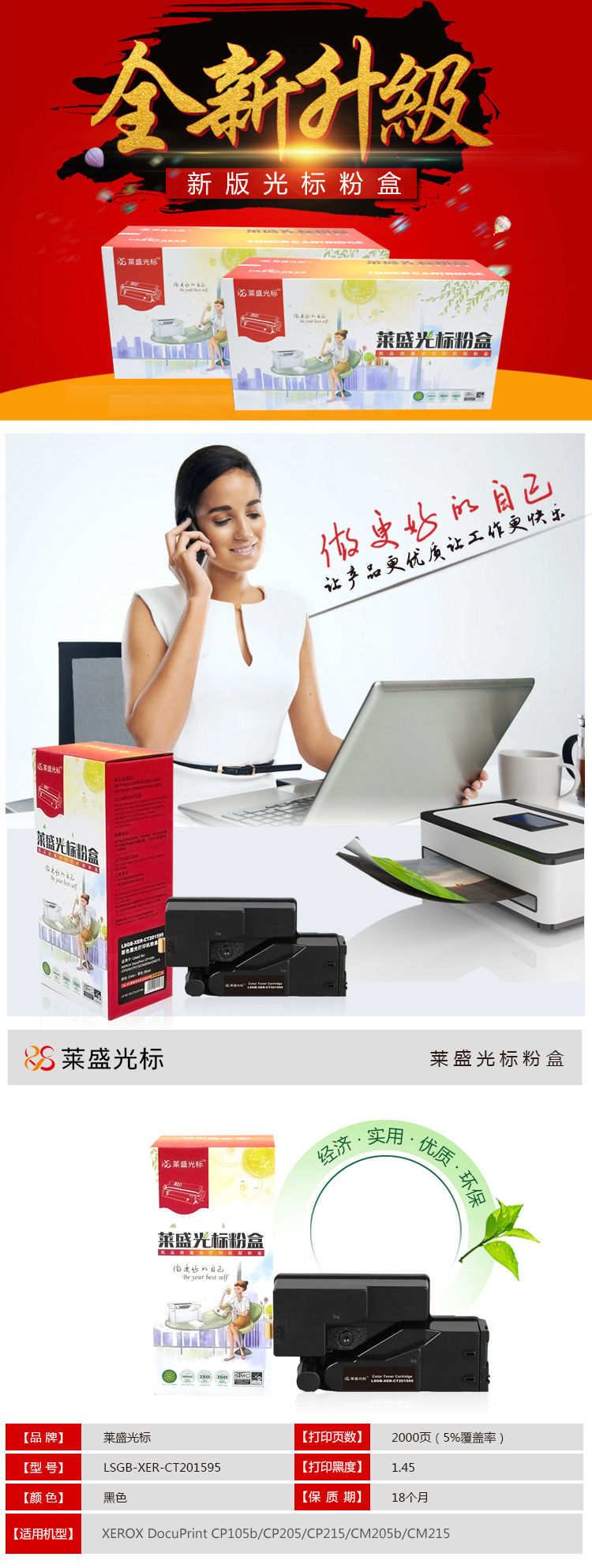 • 萊盛光標(biāo)LSGB-XER-CT201595黑色墨粉盒適用于XEROX DocuPrint CP105b/CP205 黑色