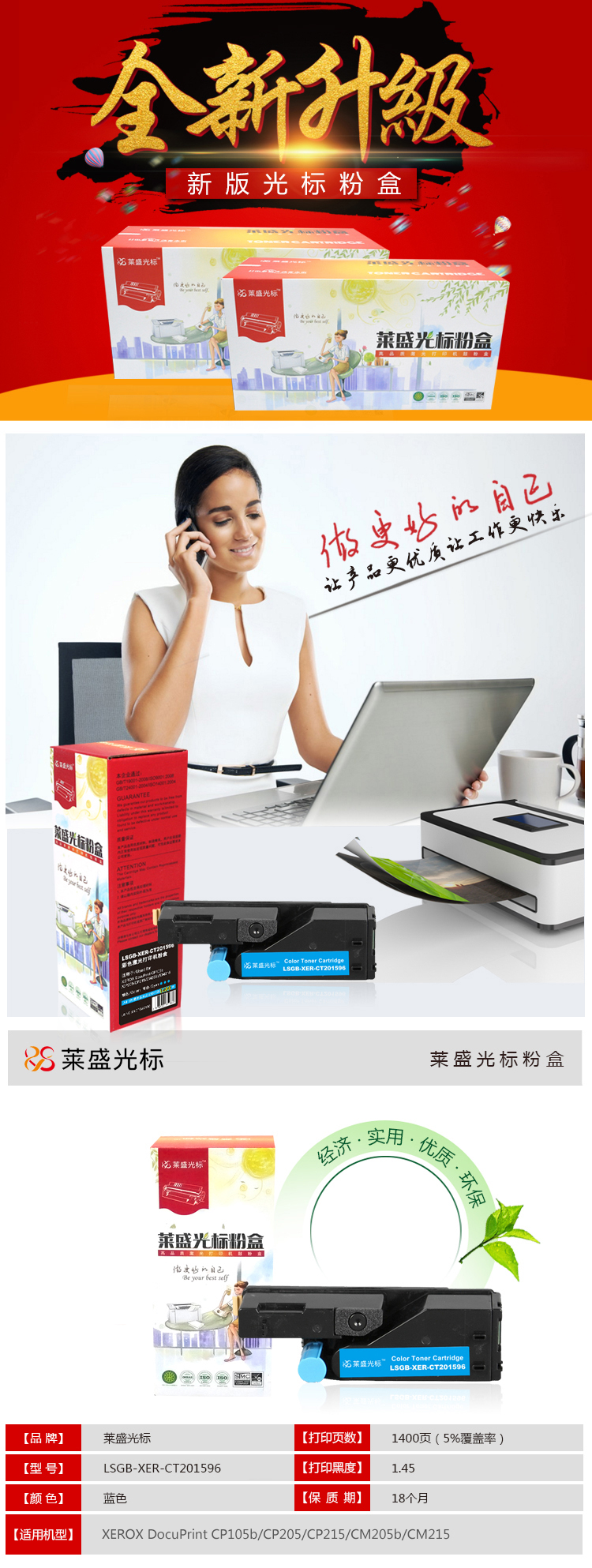 • 萊盛光標(biāo)LSGB-XER-CT201596彩色墨粉盒適用于XEROX DocuPrint CP105b/CP205 藍色