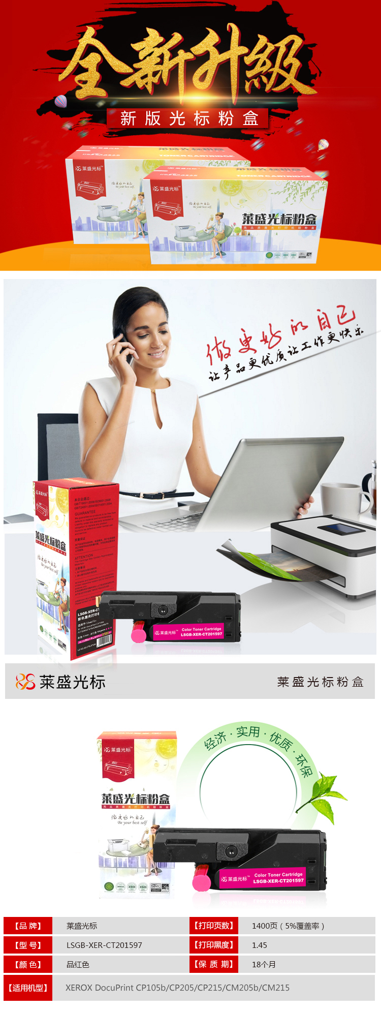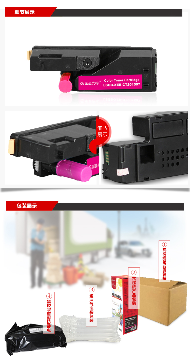 • 商品名稱:萊盛光標(biāo)LSGB-XER-CT201597彩色墨粉盒適用于XEROX DocuPrint CP105b/CP205 紅色