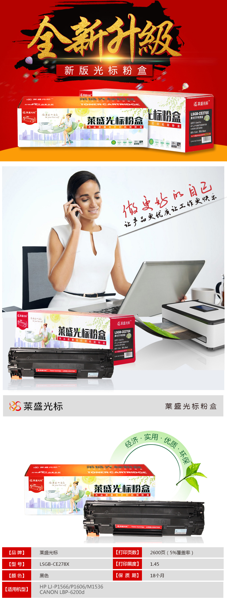 • 商品名稱:萊盛光標 LSGB-CE278X大容量黑色硒鼓適用HPLJ-P1566/P1606/M1536CANON6200d 黑色