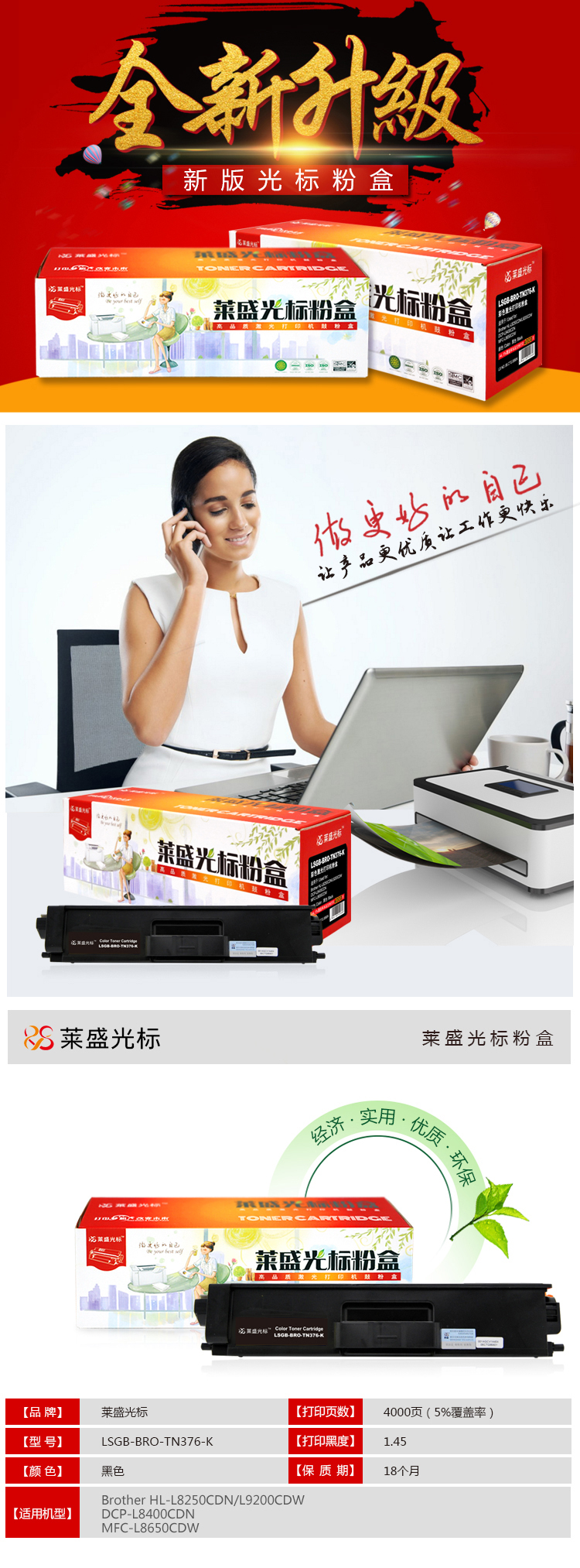 • 萊盛光標(biāo)LSGB-BRO-TN376-K黑色墨粉盒適用于Brother HL-L8250CDN/L9200CDW 黑色