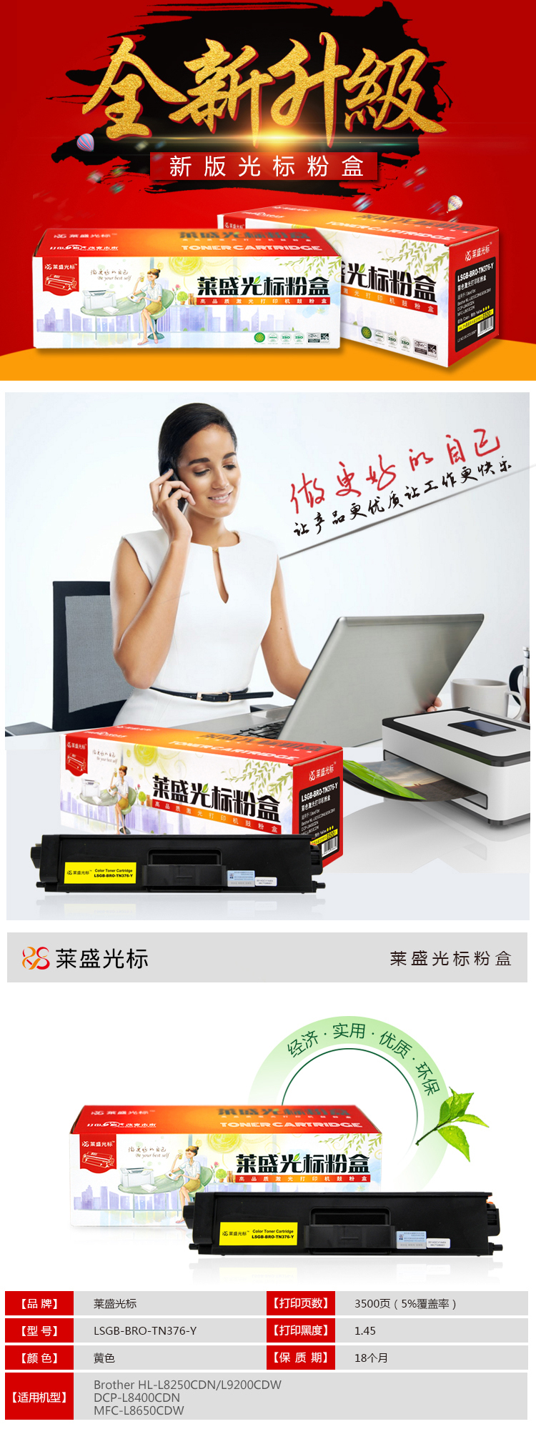 • 商品名稱:萊盛光標(biāo)LSGB-BRO-TN376-Y彩色墨粉盒適用于Brother HL-L8250CDN/L9200CDW 黃色