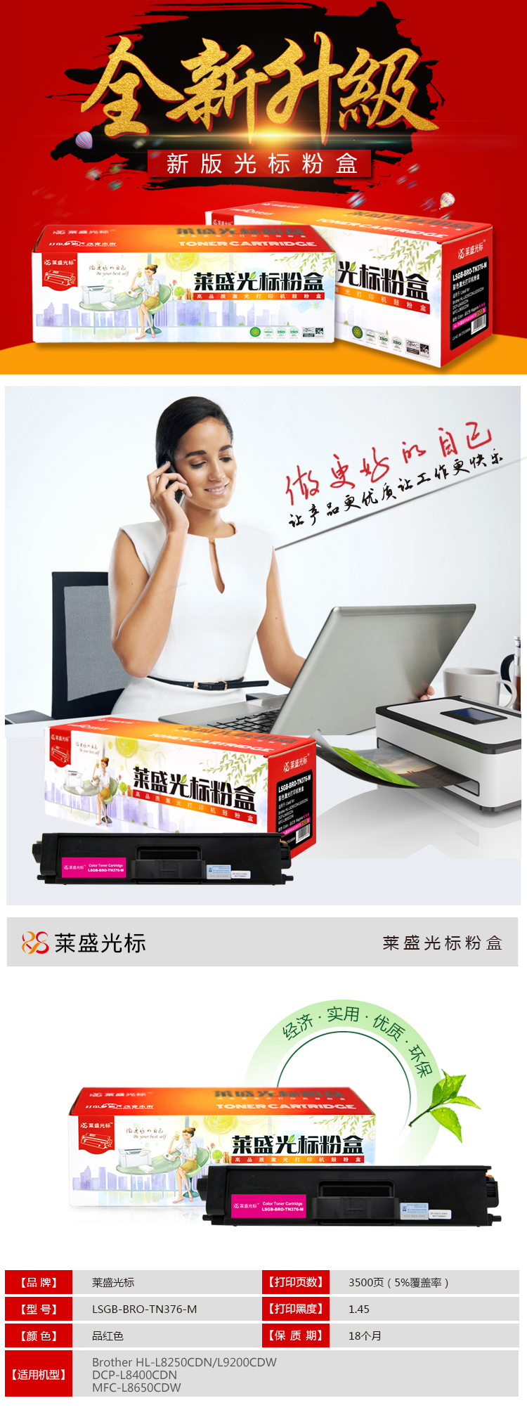 • 商品名稱:萊盛光標(biāo)LSGB-BRO-TN376-M彩色墨粉盒適用于Brother HL-L8250CDN/L9200CDW 紅色