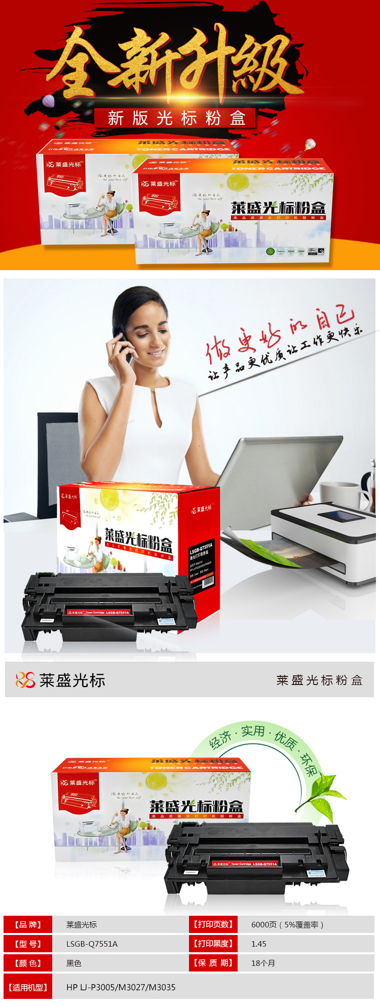 • 萊盛光標LSGB-Q7551A 黑色硒鼓適用HP LJ-P3005/M3027/M3035 黑色