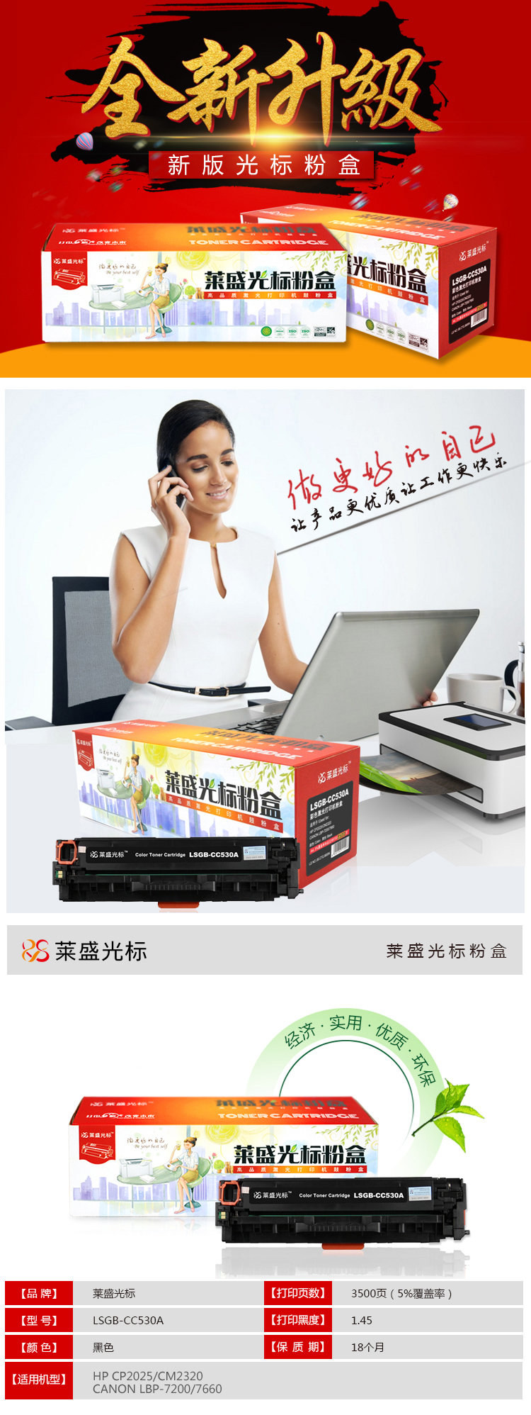 • 萊盛光標LSGB-CC530A黑色硒鼓適用于HP CP2025/CM2320 CANON LBP-7200/7660