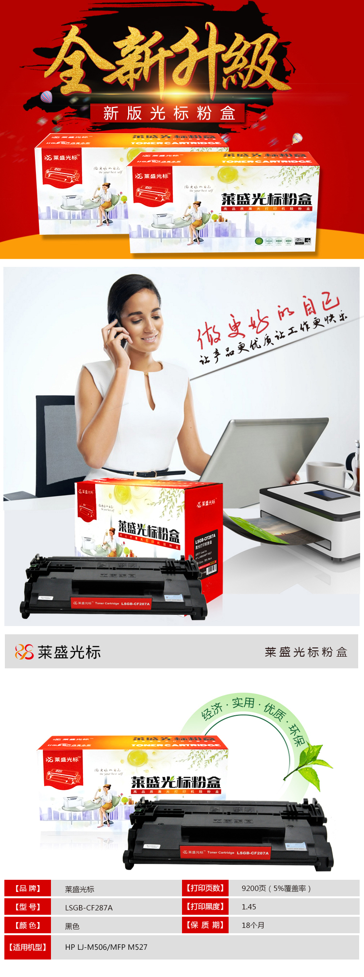 • 商品名稱:萊盛光標(biāo)LSGB-CF287A黑色硒鼓適用于HP LJ-M506/MFP M527 黑色