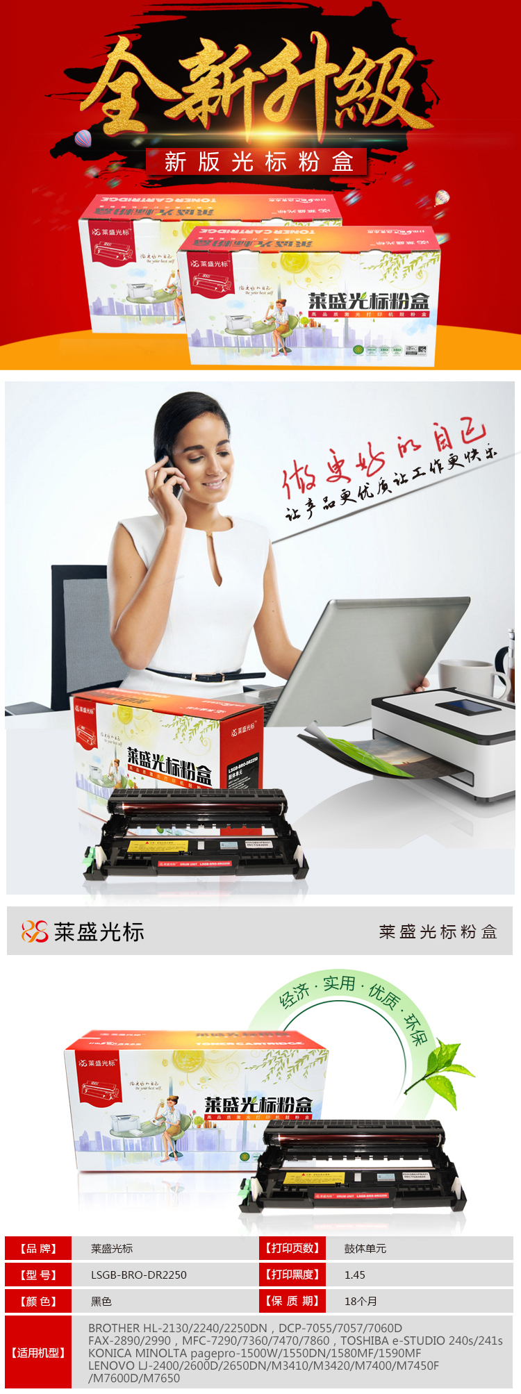 • 萊盛光標(biāo) LSGB-BRO-DR2250黑色硒鼓適用BROTHER HL-2130/2240/2250 DCP-7055 黑色
