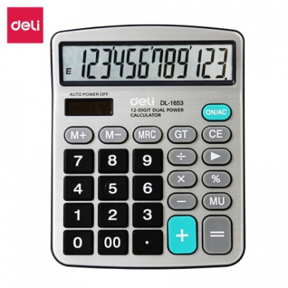 • 得力(deli)雙電源寬屏辦公桌面計算器 財務(wù)計算機(jī) 銀白色1653