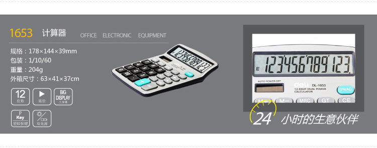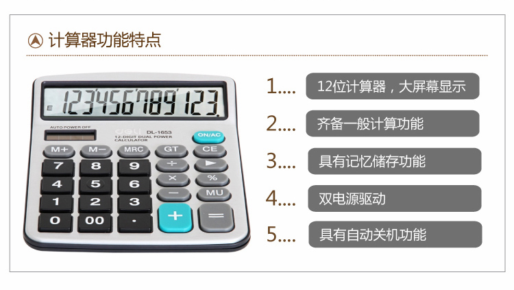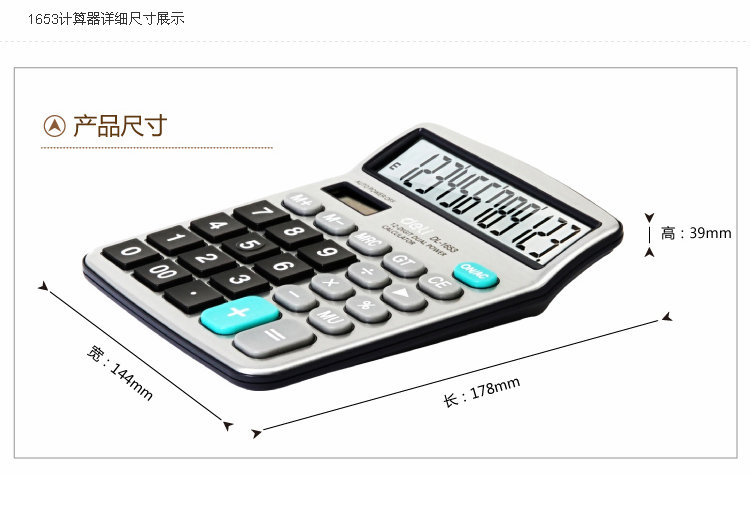 • 商品名稱:得力(deli)雙電源寬屏辦公桌面計算器 財務(wù)計算機(jī) 銀白色1653