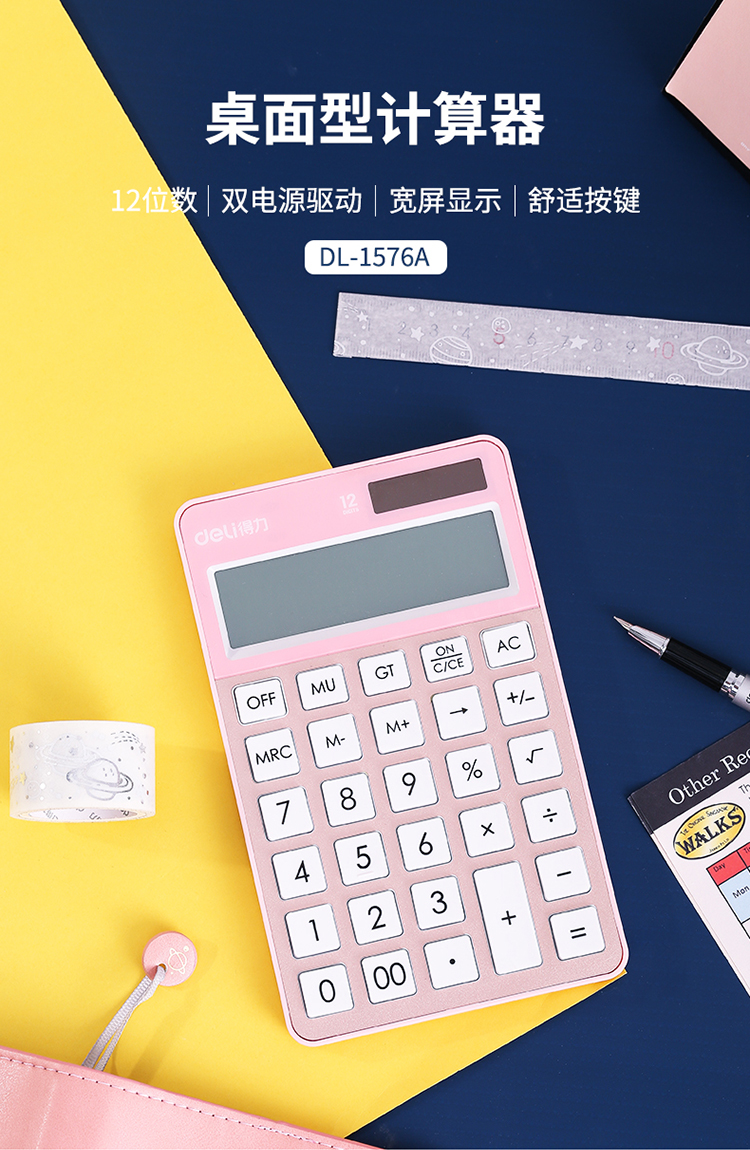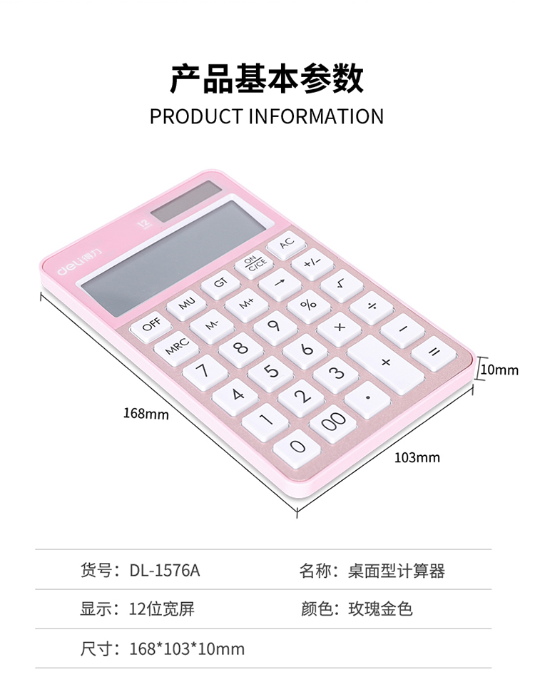 • 商品名稱:得力(deli)時(shí)尚辦公雙電源計(jì)算器 12位大屏顯示計(jì)算機(jī) 玫瑰金1576A