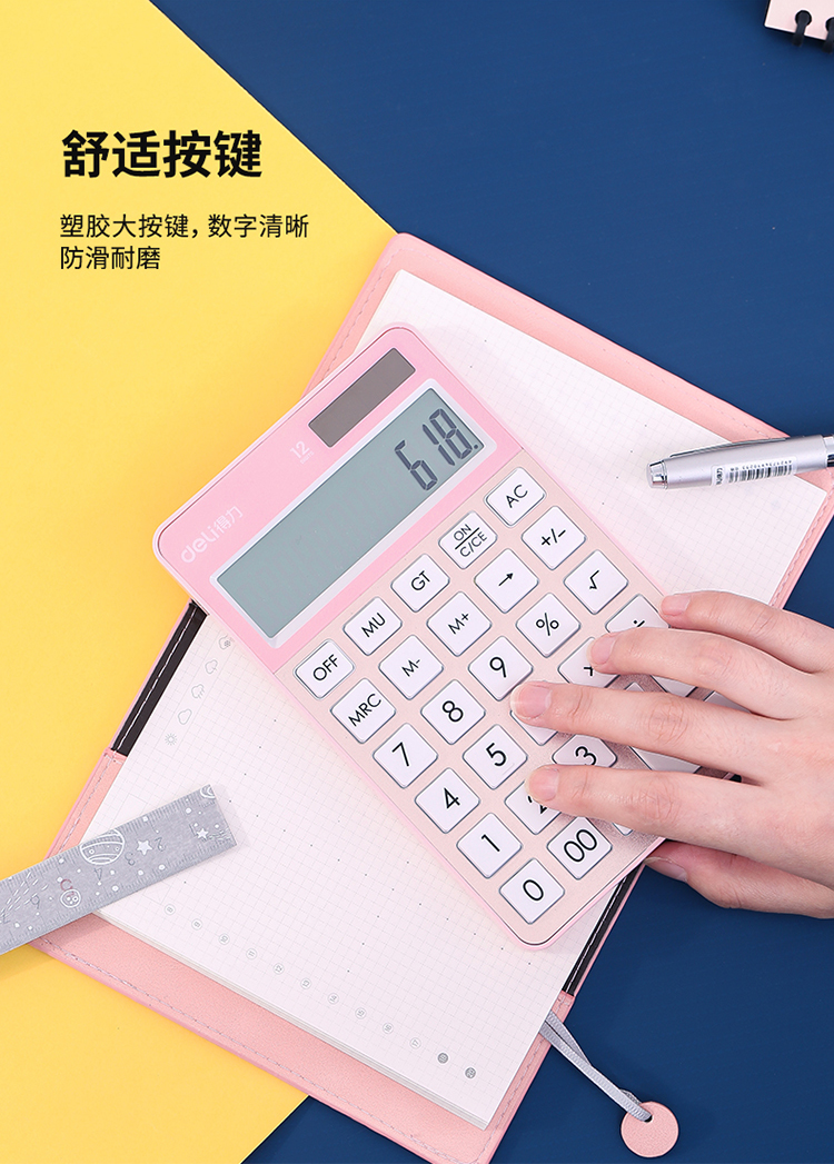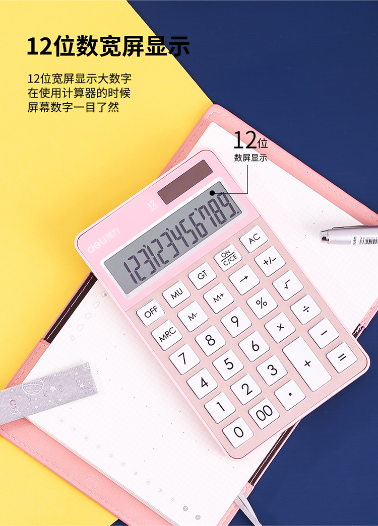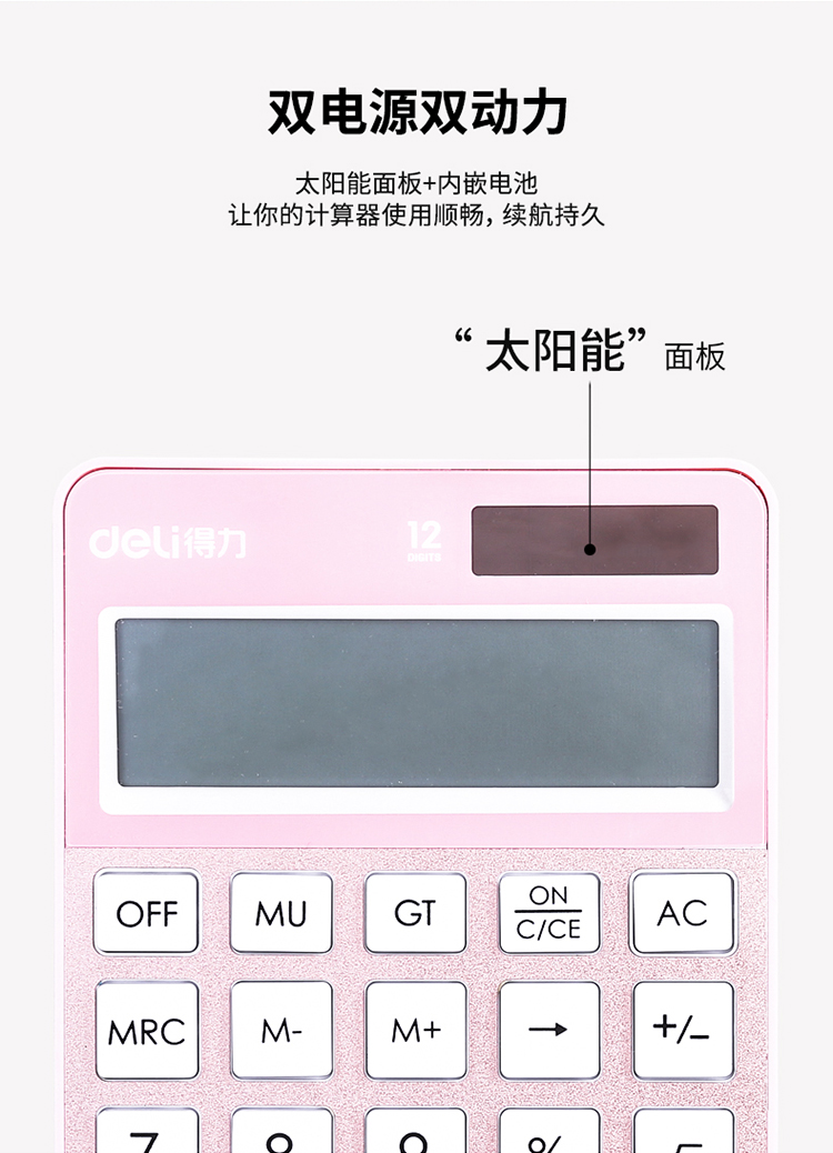 • 得力(deli)時(shí)尚辦公雙電源計(jì)算器 12位大屏顯示計(jì)算機(jī) 玫瑰金1576A