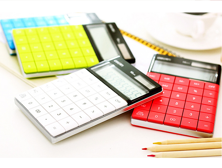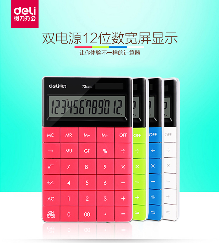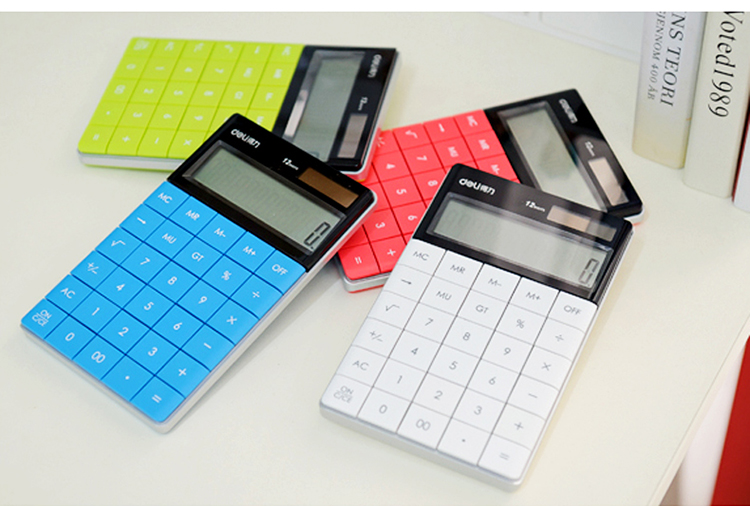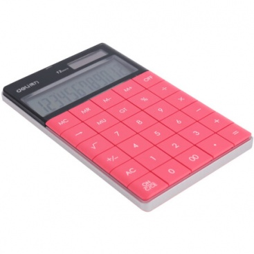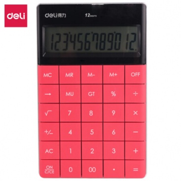 • 得力(deli)雙電源時(shí)尚彩色平板式計(jì)算器 12位無(wú)縫按鍵桌面計(jì)算機(jī) 紅色1589