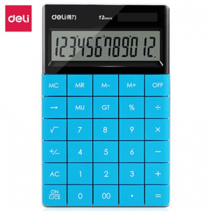 • 得力(deli)雙電源時(shí)尚彩色平板式計(jì)算器 12位無縫按鍵桌面計(jì)算機(jī) 藍(lán)色