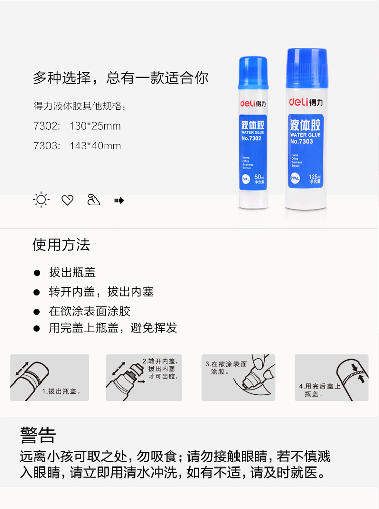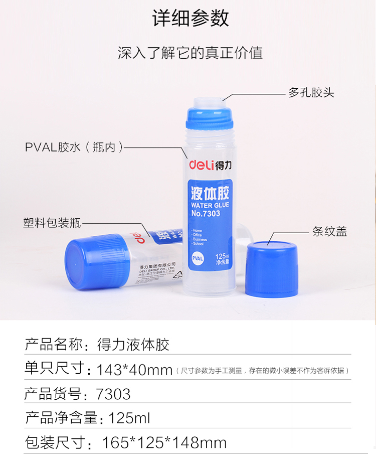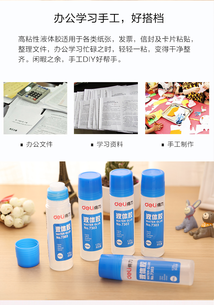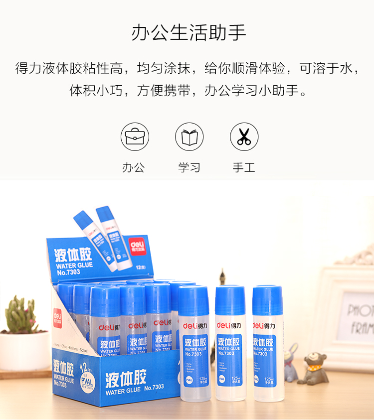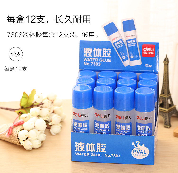 • 商品名稱:得力(deli)125ml高粘度通用液體膠水 12只裝 7303