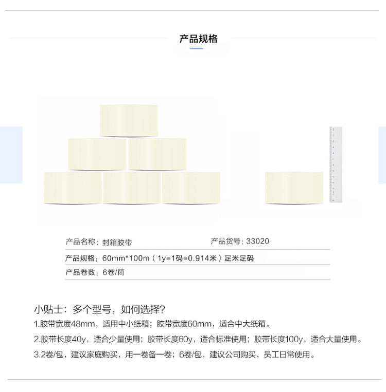 • 商品名稱:得力(deli)高品質(zhì)透明封箱膠帶/打包膠帶 60mm*100m*50um 48卷/箱 33020