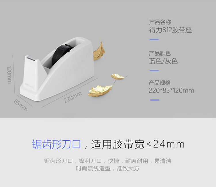 • 商品名稱:得力(deli)大號膠帶座切割器封箱器(膠帶寬度 ≤24mm) 藍(lán)灰隨機812