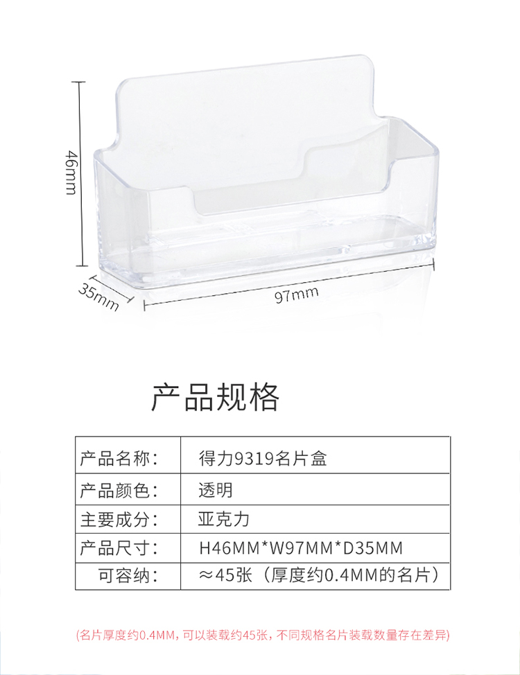 • 商品名稱:得力(deli)桌面辦公名片座 透明亞克力名片收納展示盒 9319