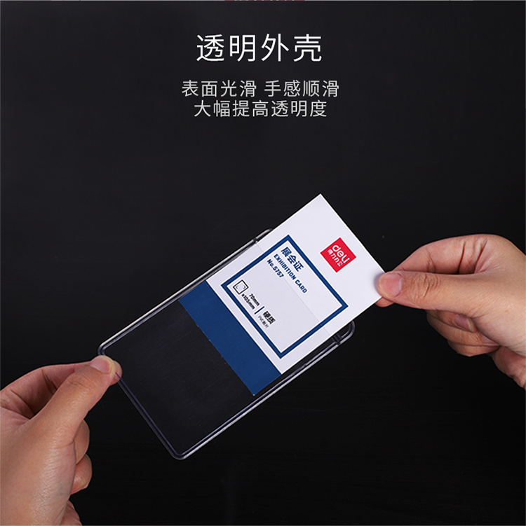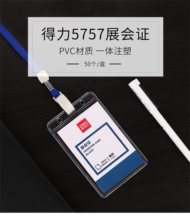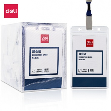 • 商品名稱:得力(deli) 50只卡套+50根吊繩 大尺寸 豎式展會證件卡套 硬質(zhì)PVC員工證工牌 5757