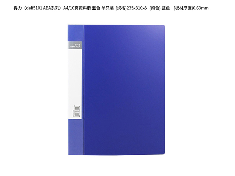 • 商品名稱:得力(deli) 5101 ABA系列A4/10頁資料冊 藍色 單只裝