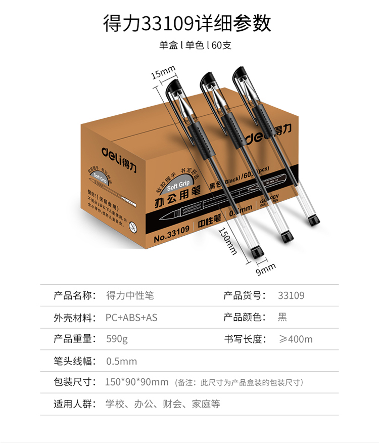 • 商品名稱:得力(deli)60支0.5mm中性筆簽字筆水筆 子彈頭黑色33109