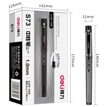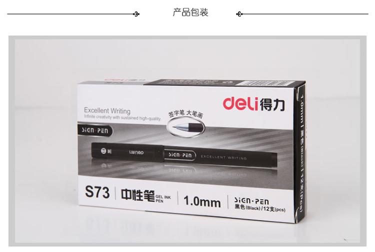 • 商品名稱:得力(deli)1.0mm黑色辦公中性筆水筆簽字筆碳素水筆 12支/盒S73