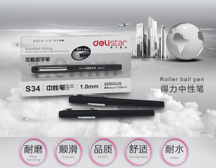 • 商品名稱:得力(deli)1.0mm加粗中性筆水筆簽字筆 黑色12支/盒S34