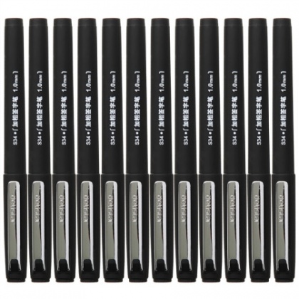 • 得力(deli)1.0mm加粗中性筆水筆簽字筆 黑色12支/盒S34