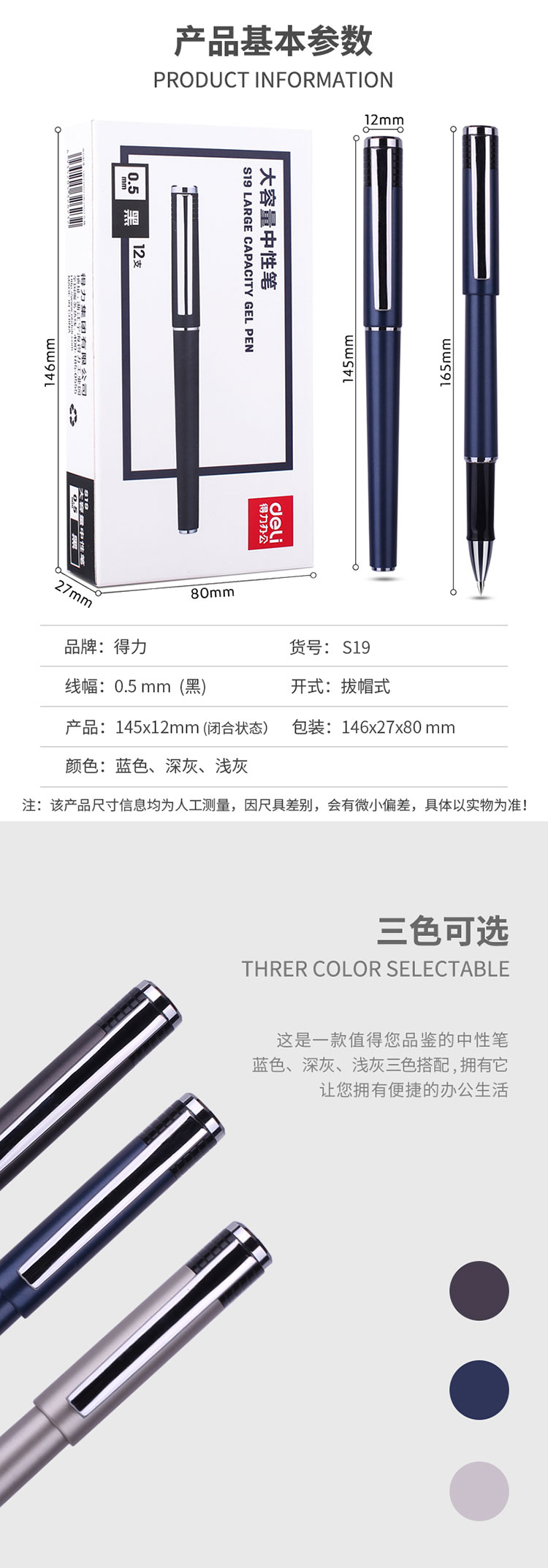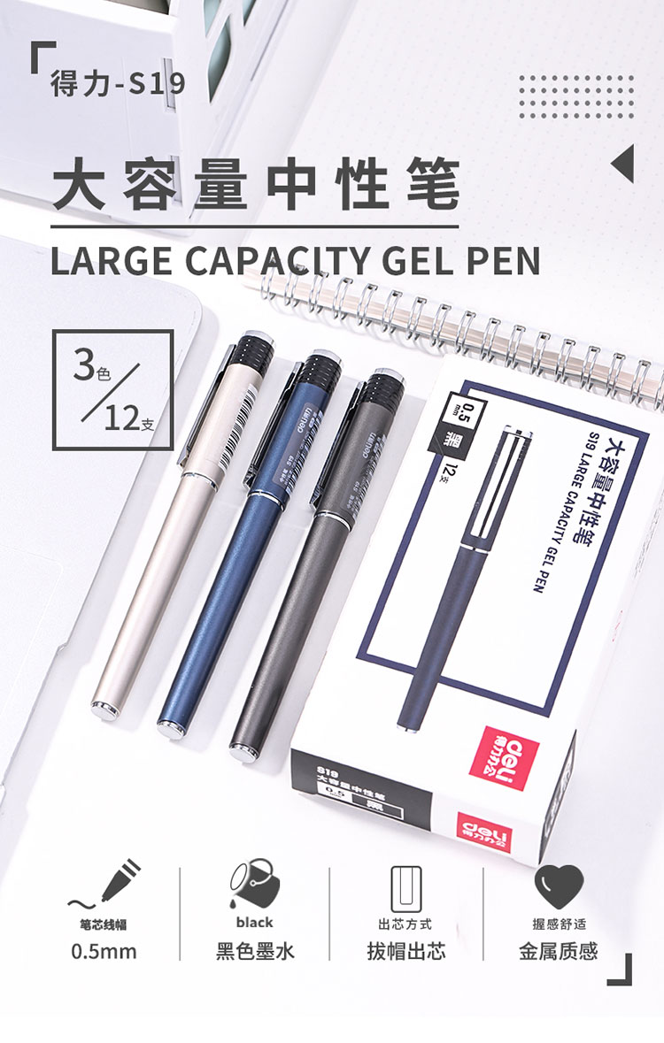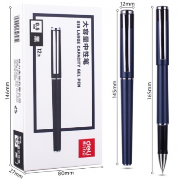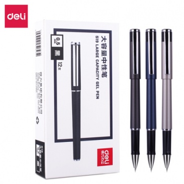 • 商品名稱:得力(deli)大容量12支0.5mm辦公中性筆 子彈頭黑色水筆簽字筆 S19