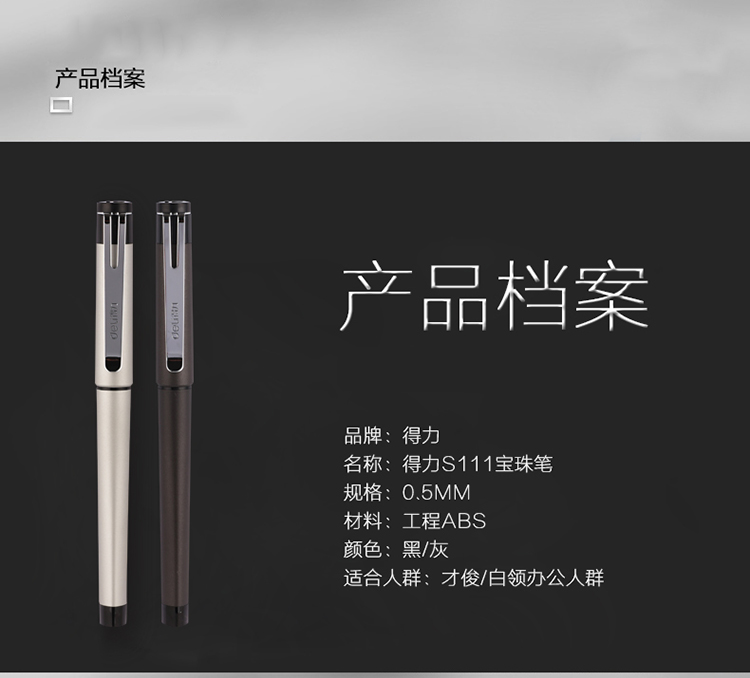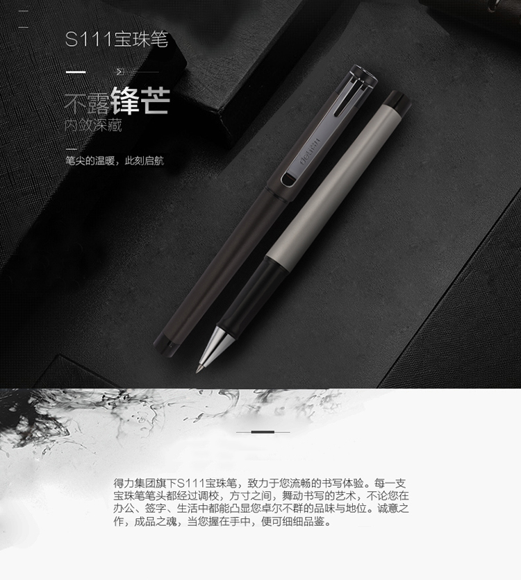 • 商品名稱:得力(deli)0.5mm時(shí)尚商務(wù)寶珠筆中性筆 金屬筆夾簽字筆 切面握手亮銀 S111